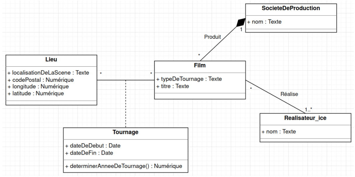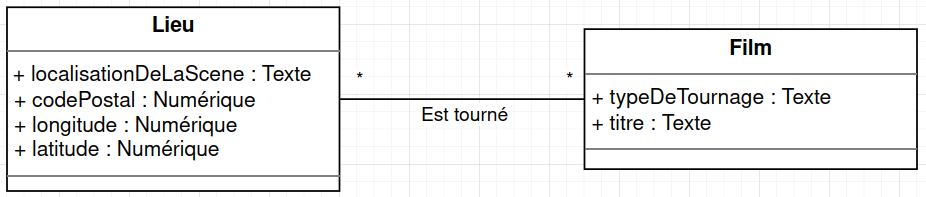 … au lieu de dessiner trois classes : Film, Tournage et Lieu, comme nous l’avons fait précédemment.