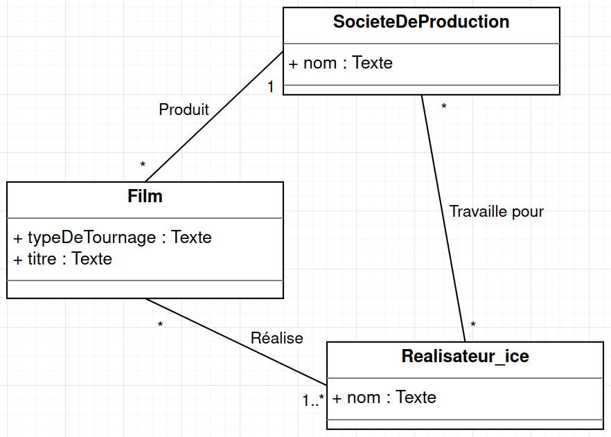 1..* ) , et un réalisateur peut avoir produit 0, 1 ou plusieurs (noté * ) films :Ajout des multiplicités entre Film et Réalisateur-ice
