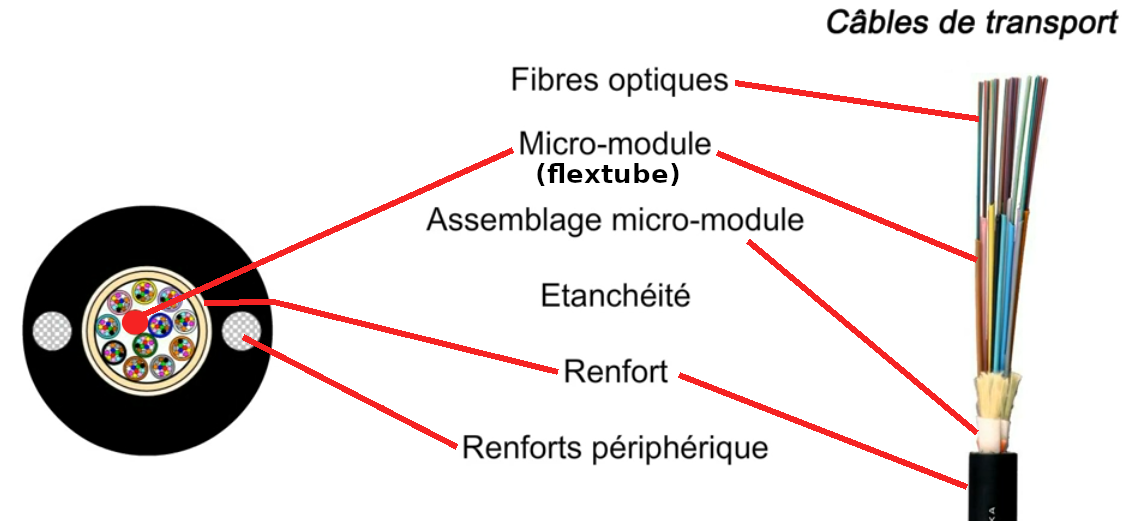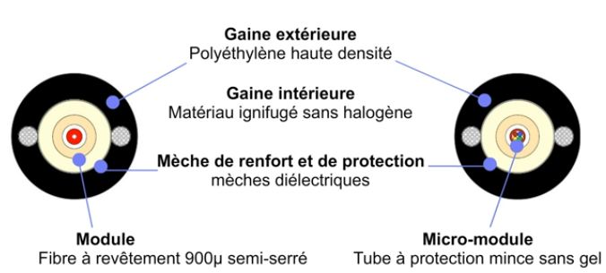 Les câbles utilisés dans la partie Transport optique (D1) du réseau sont des câbles extérieurs. En France a été fait le choix:
