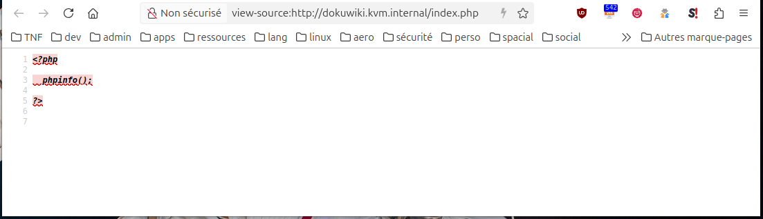 Si on affiche le code source de la page blanche retournée, on peut voir le code PHP non interprété :